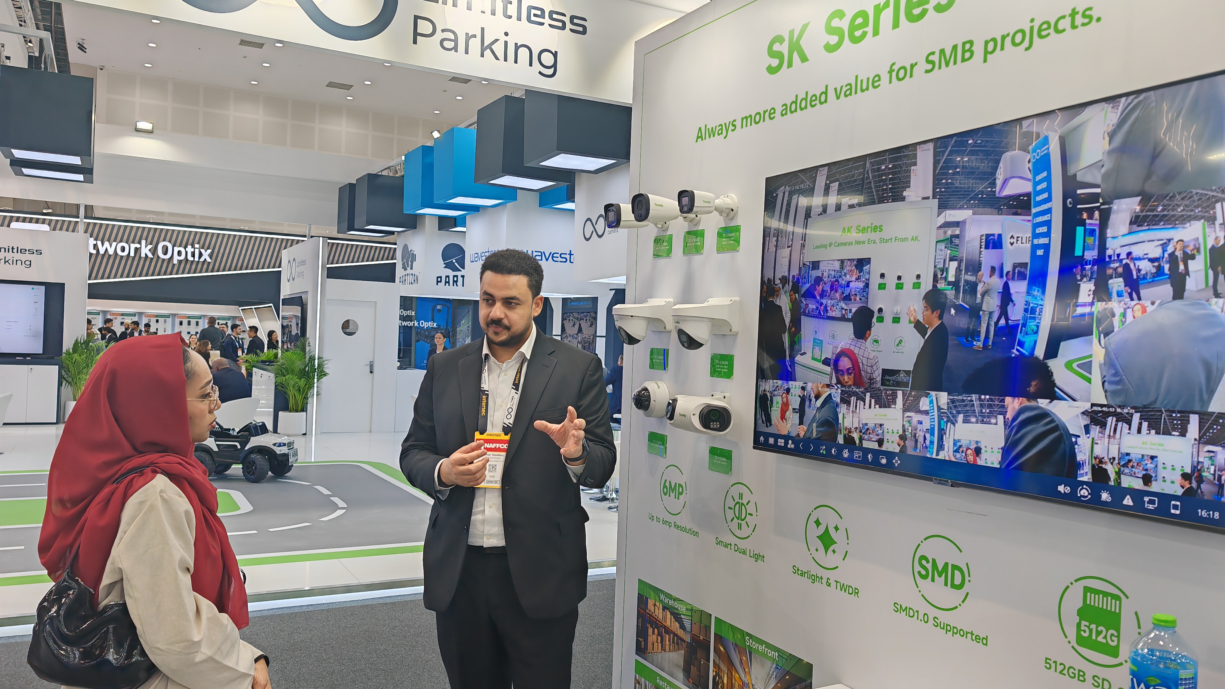 為應(yīng)對全球市場多元化的需求,天地偉業(yè)本次重點展示了60余款核心產(chǎn)品,全面覆蓋家用攝像機、項目型攝像機、AI大模型錄像機、All in One服務(wù)器四大產(chǎn)品線,致力于提供從基礎(chǔ)安防到高端智慧城市建設(shè)的全棧式解決方案。各地客戶結(jié)合自身需求關(guān)注著不同產(chǎn)品,但都不約而同地為天地偉業(yè)的產(chǎn)品實力點贊。歐洲客戶對LK系列在復(fù)雜光線下的出色表現(xiàn)與AI智能分析能力表示贊賞;非洲客戶對無電無網(wǎng)攝像機興趣濃厚;海灣地區(qū)工程師則更關(guān)注SK、LK系列在極端環(huán)境下的穩(wěn)定性以及All in One服務(wù)器的便捷部署。此外,Tian系列及K系列所體現(xiàn)的高效中心化管理能力,也吸引了眾多尋求消費升級與商業(yè)效能提升的客戶。
