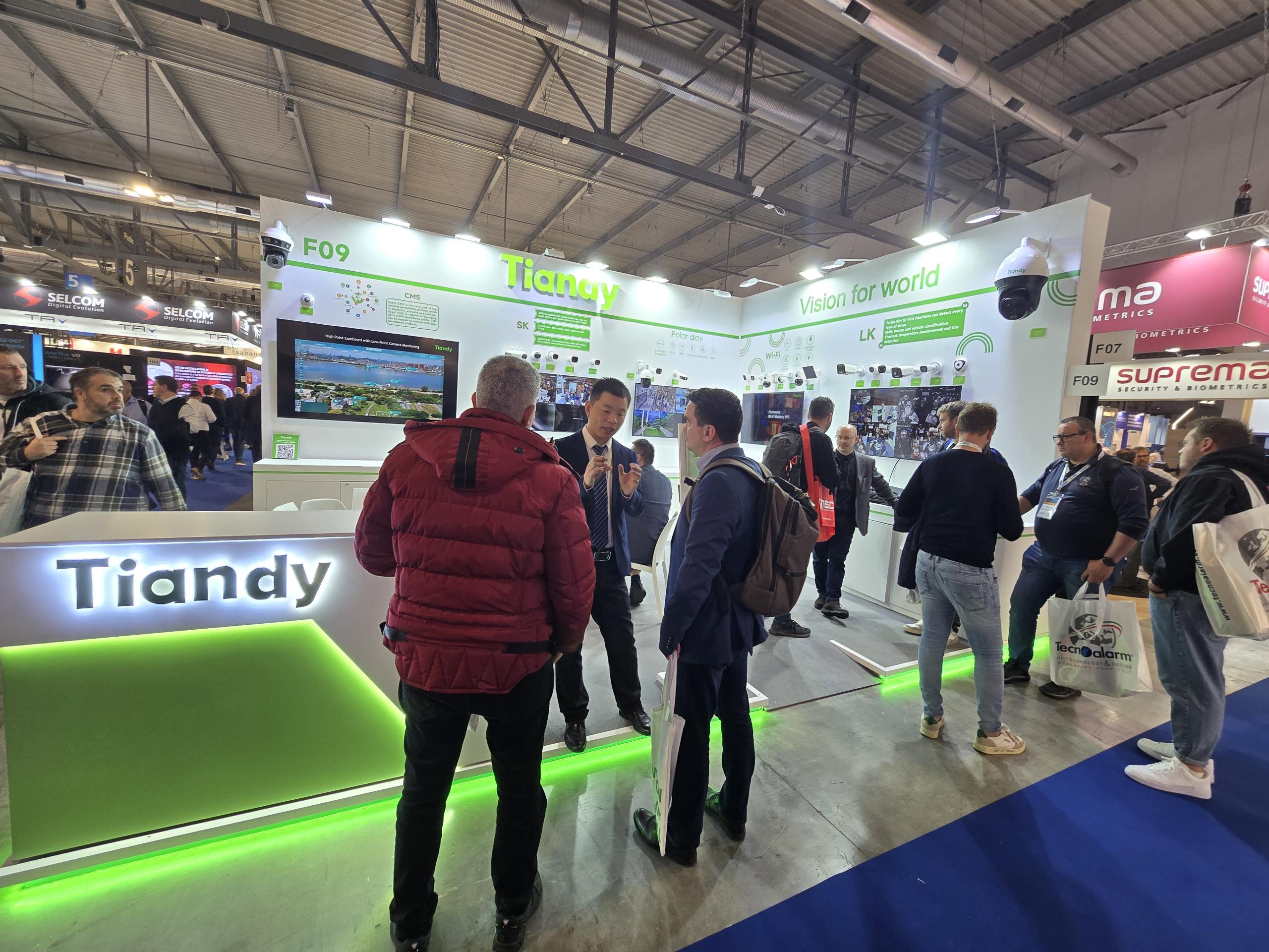 作為安防行業(yè)的領(lǐng)軍企業(yè),天地偉業(yè)受邀出席本次展會(huì),攜最新產(chǎn)品、最前沿技術(shù)與最優(yōu)質(zhì)解決方案重磅亮相。從開(kāi)展首日起,天地偉業(yè)的展臺(tái)便氣氛熱烈,吸引了來(lái)自意大利、西班牙、希臘、巴爾干等多個(gè)地區(qū)與國(guó)家的行業(yè)專家、合作伙伴駐足交流。